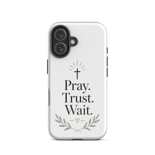 Pray Trust Wait iPhone Case | Christian Phone Case | Faith Inspirational Cover | Minimalist Scripture Design | Religious Phone Case