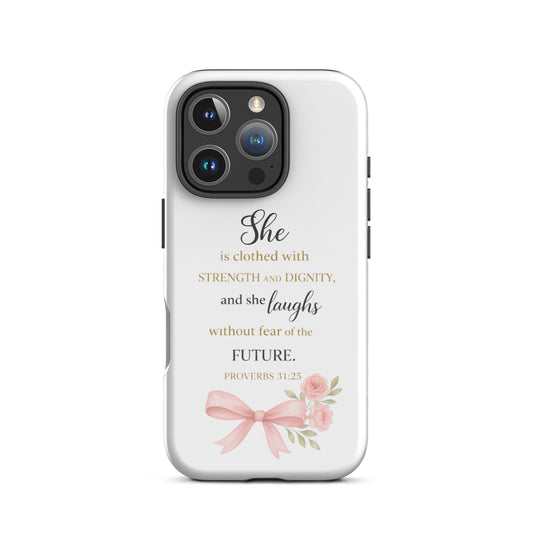 Proverbs 31:25 iPhone Case | She Is Clothed with Strength and Dignity | Christian Phone Case | Faith Inspirational Cover | Gift for Women