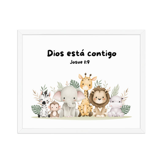 God Is With You Joshua 1:9 Spanish Scripture Kids Wall Art – Christian Nursery Decor | Bible Verse Poster for Children